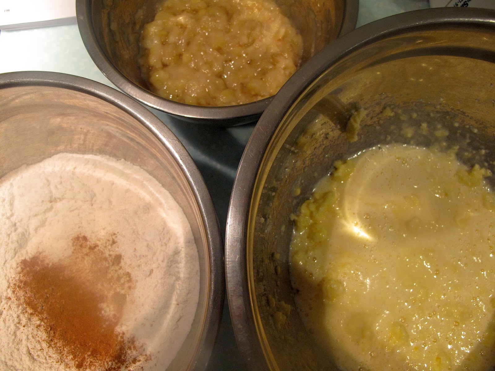 Add bowl 3 ingredients alternately with with bowl 2 ingredients to bowl 1.